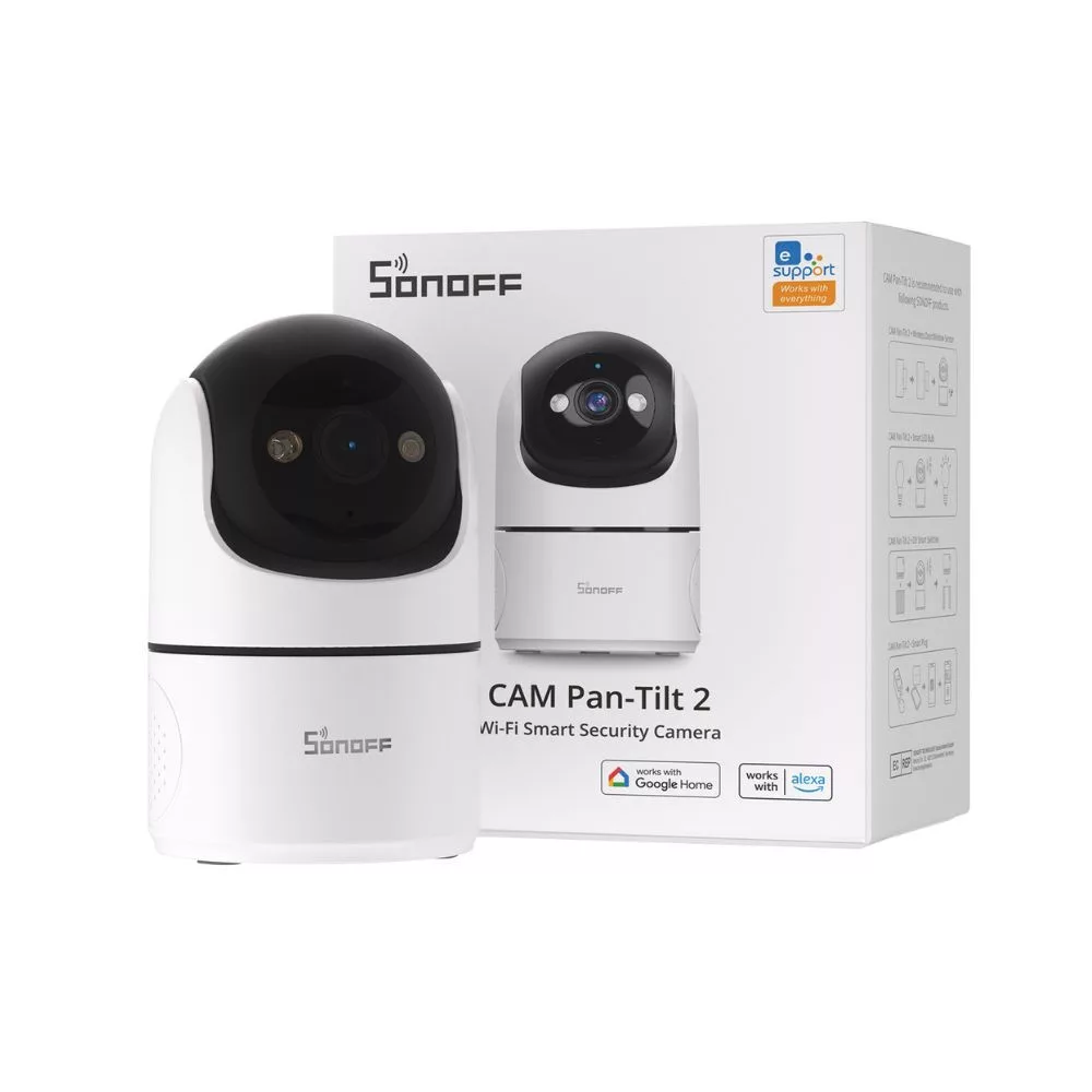 A Sonoff CAM- PT2 egy beltéri, motoros forgásra képes (pan-tilt) HD felbontású biztonsági kamera, amely teljes körű, akár 360°-os lefedettséget biztosít, így ideális otthoni vagy irodai megfigyeléshez. Nem csak az eWeLink rendszerekkel működik, hanem ONVIF vagy RTSP integrációra is alkalmas pl. NVR (videó rögzítő) rendszerekkel.